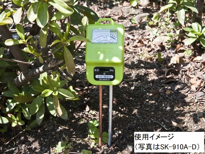 畑、花壇、植木鉢などのpH値を簡単にチェックできます。