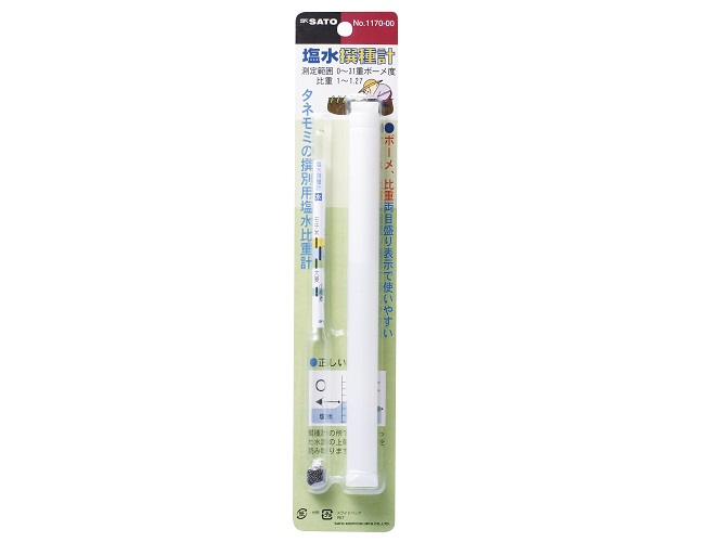 Measures concentration of brine water to sort seeds.