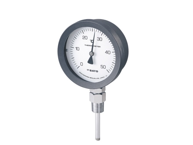 BM-S-100P is a bimetallic dial thermometer which its sensing stem extended below the dial. Adopted polyamide resin for a case, and brass for a sensor and screw, the best cost reduction is achieved without worsening quality. You can choose your preferred one from 9 variants made up of 3 temperature ranges and 3 different length of sensing stems. Those of 0 to 200°C are made to order. This model is of 0 to 50°C, 150-mm sensing stem.