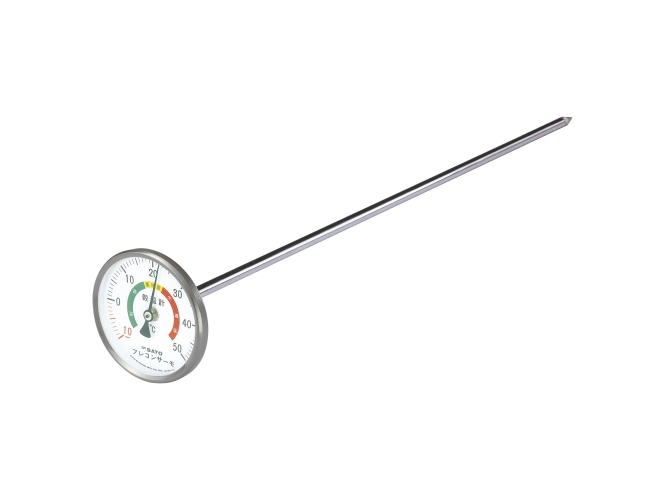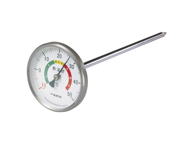 An ideal thermometer for temperature management of grain storage. A colored scale makes it convenient to recognize the suitable temperature zone.