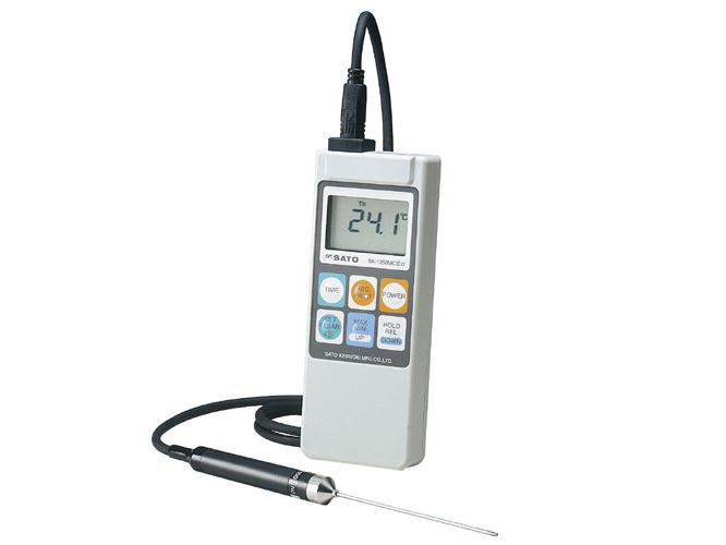 SK-1250MCIIIα, a handy waterproof digital thermometer with memory storage, has as many as 22 types of thermocouple probes and 6 thermistor probes to meet any applications.