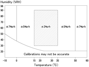 | Humidity | 20.0 to 98.0%rh at 23°C, refer to the graph below this table | |